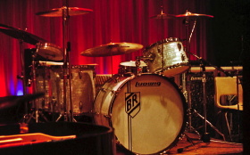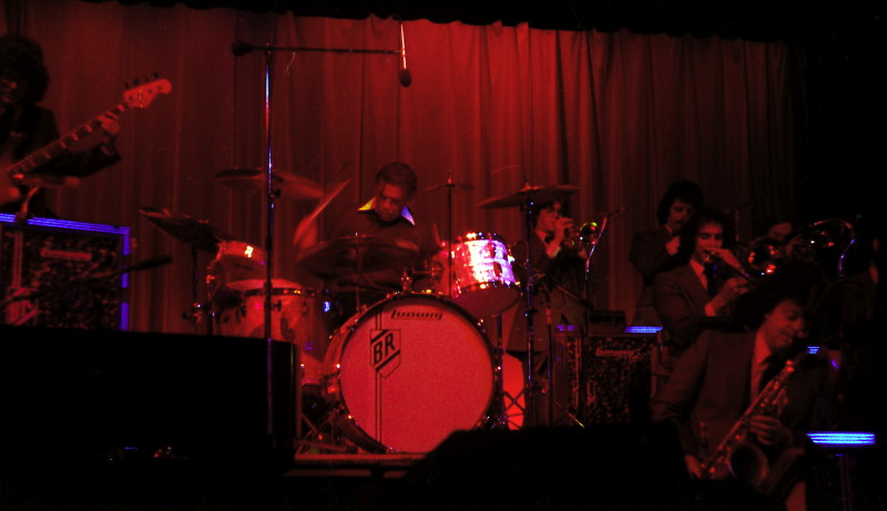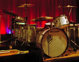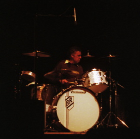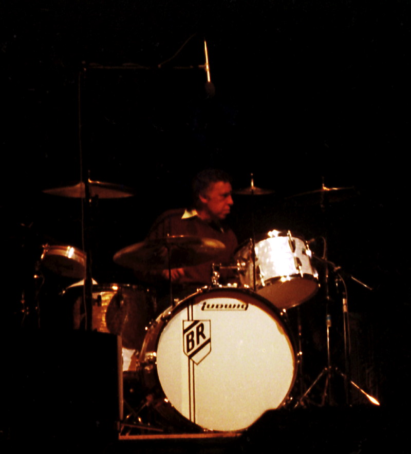 I'm not sure, but I think this may be a rare opportunity for all of us BR fans to get quite such a good look at BR's kit at the time; I have not seen any other photos even remotely like this one yet. One could almost go around and sit down at those drums!