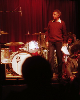 I’m gratified to be able to share yet another night of the fabulous Buddy Rich band in performance in front of a justifiably amazed and gratified full house of concert goers. I think it is clearly a testament to Buddy’s genius and indefatigable musical integrity that one can come across so many completely previously unknown and inconsequential recorded performances of him and still, ALWAYS, hear a multitude of consistently ridiculous levels of superb music being played. I mean, the known and unknown recordings keep pointing out that the man pulled this stuff off night after night thousands of times!By the way, whoever “tensioned” Buddy’s drums that evening was completely spot on! (Remember the distinction Buddy made between tensioning and tuning, folks.)